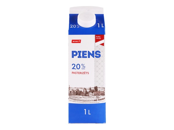 • Piens Rimi pasterizēts tetrapaka, 2%, 1l